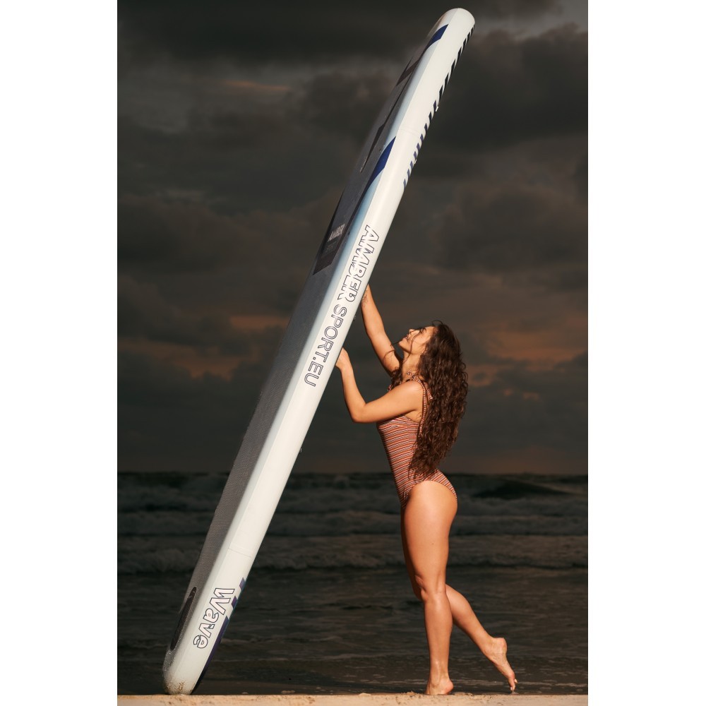 A all-round inflatable SUP. Made of new generation PVC DROP STITCH material with soft EVA decking. Equipped with elastic strings and D-RINGS in front for securing dry bag or other small items. Plastic detachable fin.