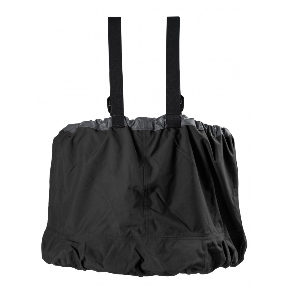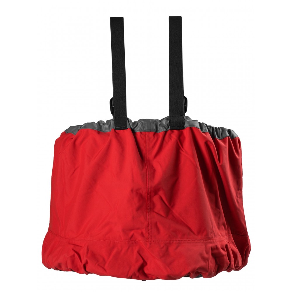 + Nylon tunnel ensures comfort by breathability when its loosened and lowered for calmer and warmer days but can be secured up high with a waist bungee sinch and suspenders to keep the water out on rougher and colder days.