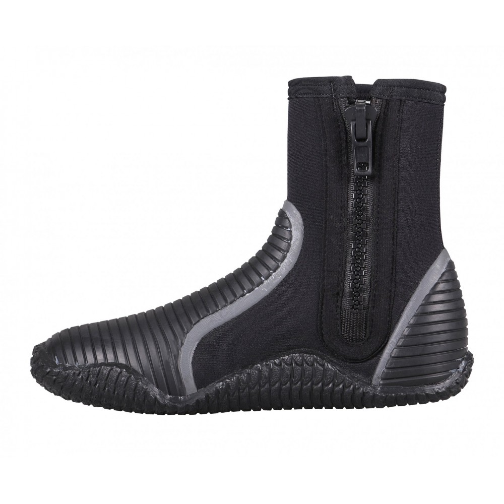 High cut neoprene boots. 5 mm neoprene, hard rubber sole.