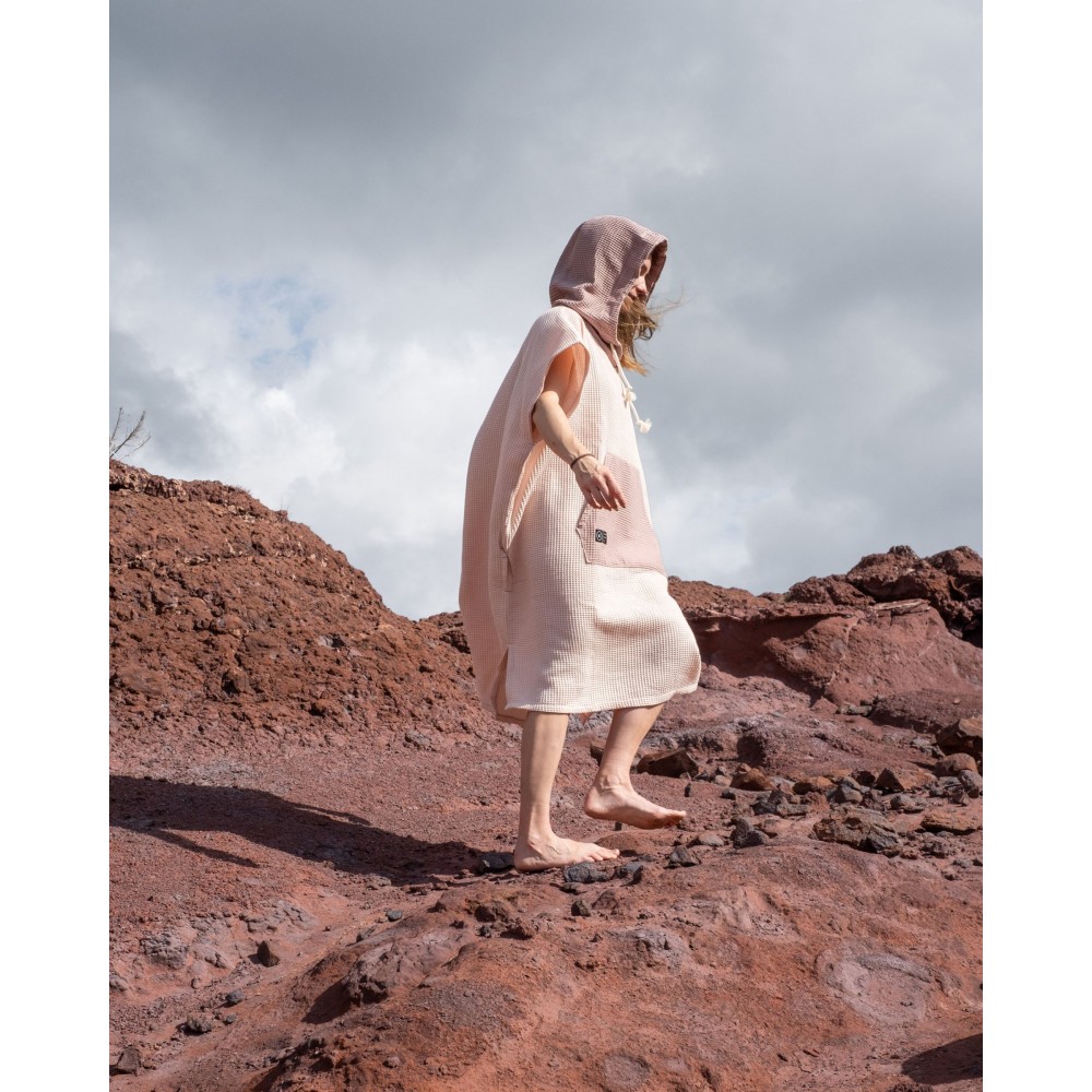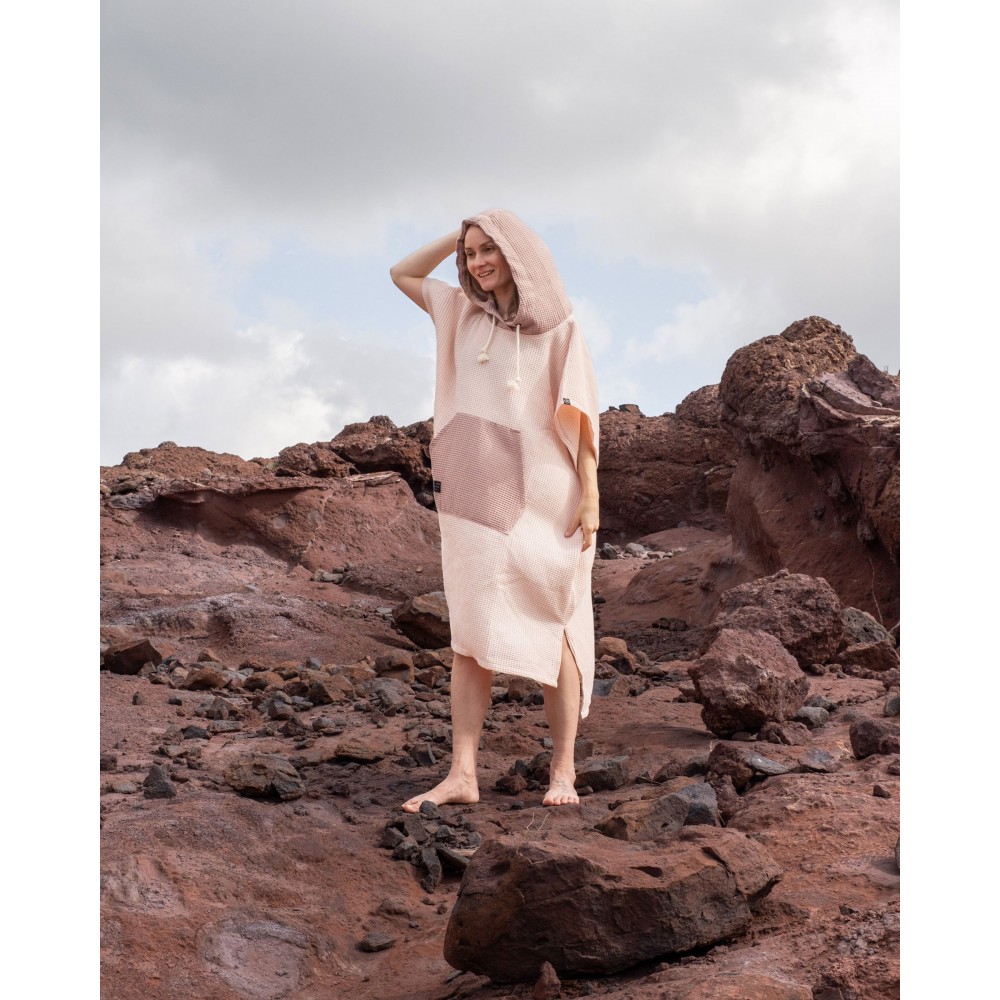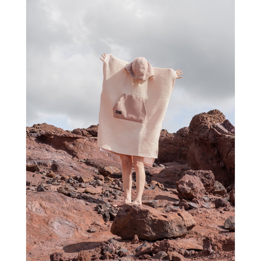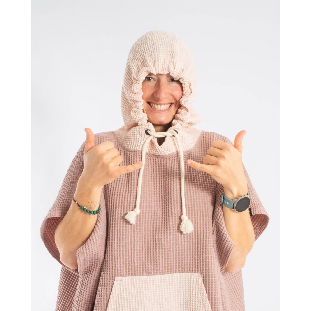 Escondido pončo ir ideāls sabiedrotais airētājiem, kuri ceļā vēlas privātumu, komfortu un ērtu pārģērbšanos. Tas ir izgatavots no 100% kokvilnas ar vafeļu rakstu, kas ātri uzsūc ūdeni un vienlaikus neļauj pieķerties smiltīm un netīrumiem, padarot to perfektu lietošanai ārā.