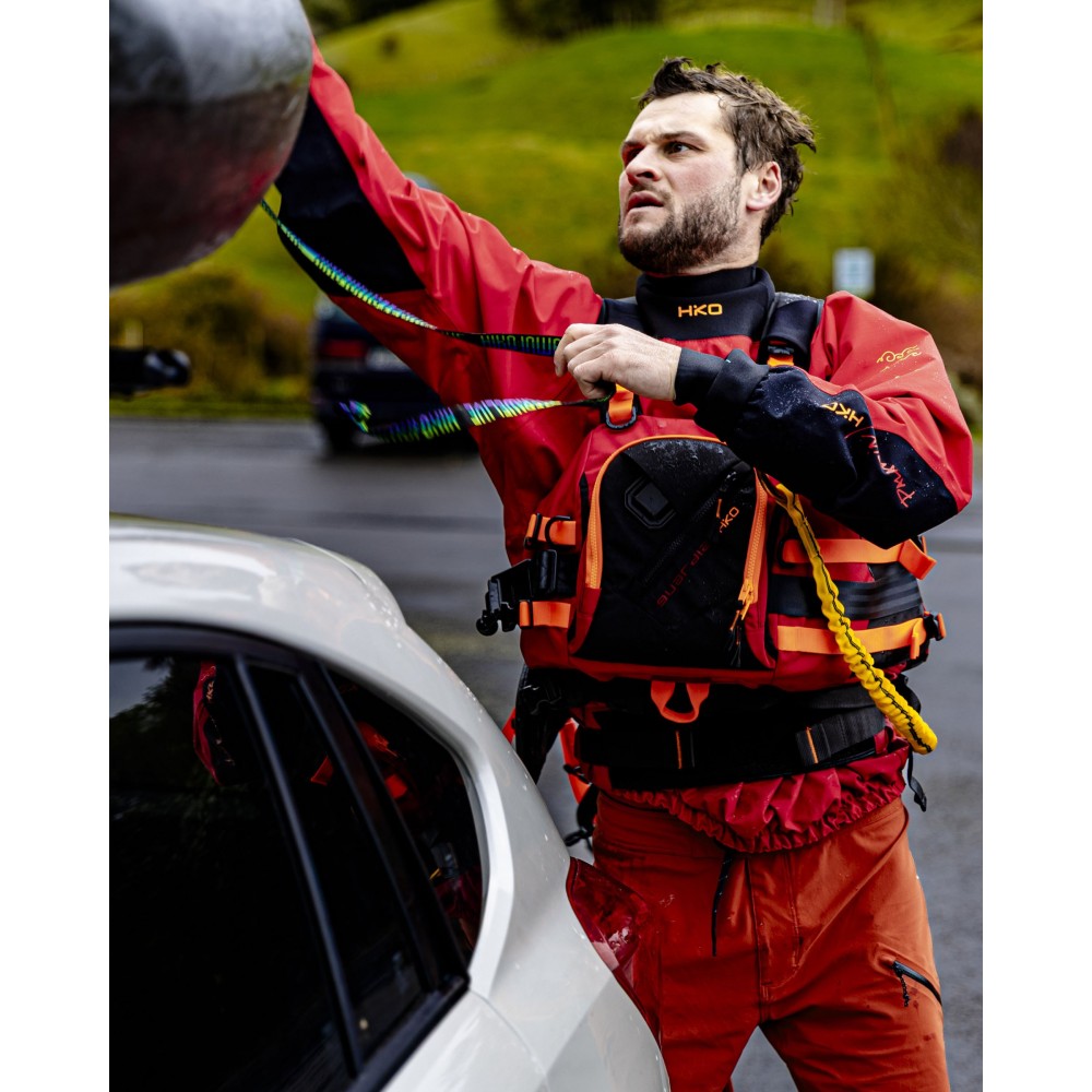 Bungee tipa vilkšanas siksna netraucē kustībām un palīdz absorbēt triecienus, velkot vai atgūstot ekipējumu.