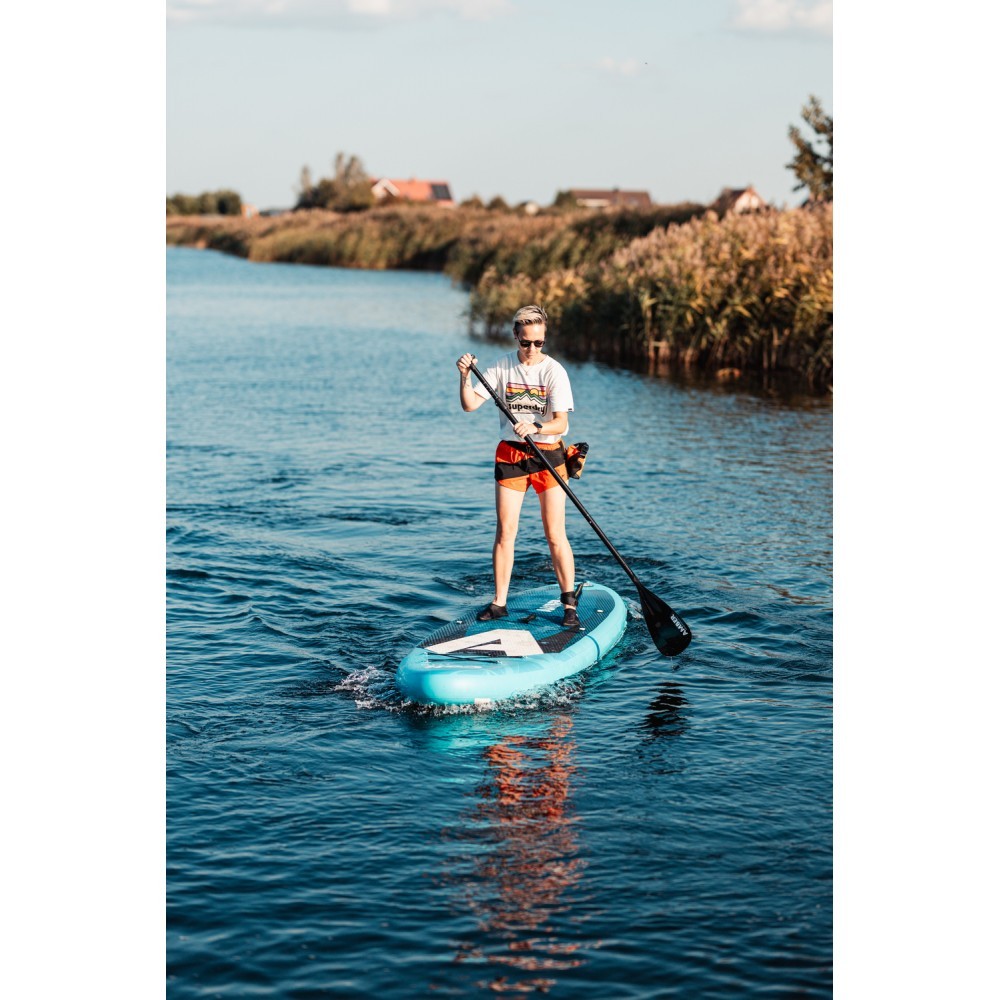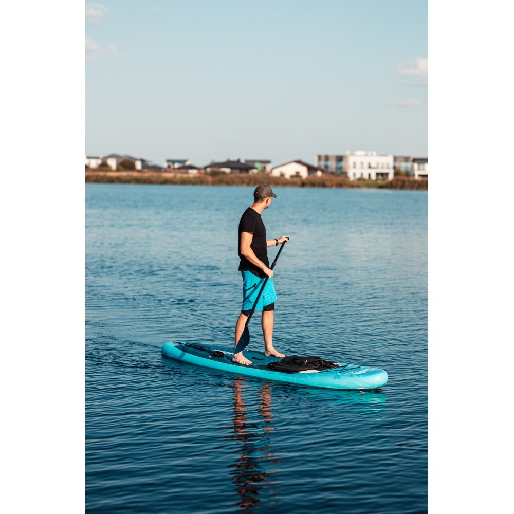 Visaptverošs piepūšams SUP. Izgatavots no jaunākās paaudzes PVC DROP STITCH materiāla ar mīkstu EVA klāju. Aprīkots ar elastīgām auklām un D-veida gredzeniem priekšpusē sausā maisa vai citu mazu priekšmetu nostiprināšanai. Noņemama plastmasas spura.