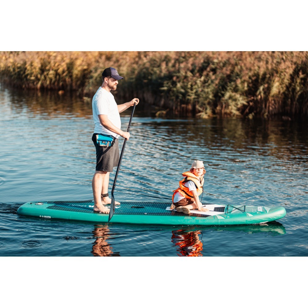 Visaptverošs piepūšams SUP. Izgatavots no jaunākās paaudzes PVC DROP STITCH materiāla ar mīkstu EVA klāju. Aprīkots ar elastīgām auklām un D-veida gredzeniem priekšpusē sausā maisa vai citu mazu priekšmetu nostiprināšanai. Noņemama plastmasas spura.