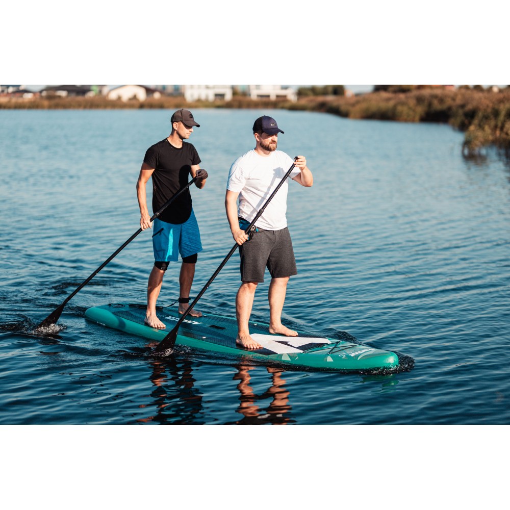 Visaptverošs piepūšams SUP. Izgatavots no jaunākās paaudzes PVC DROP STITCH materiāla ar mīkstu EVA klāju. Aprīkots ar elastīgām auklām un D-veida gredzeniem priekšpusē sausā maisa vai citu mazu priekšmetu nostiprināšanai. Noņemama plastmasas spura.