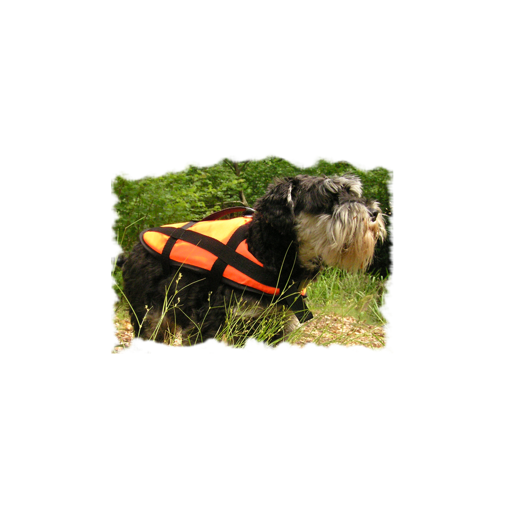 Peldspējas palīglīdzeklis sunim, lai pasargātu to no noslīkšanas. Stiprināms ar trīs sprādzēm ar jostu garuma regulēšanu. Labu suņa redzamību uz ūdens fona nodrošina spilgta, oranža krāsa un SOLAS atstarojošā lente.