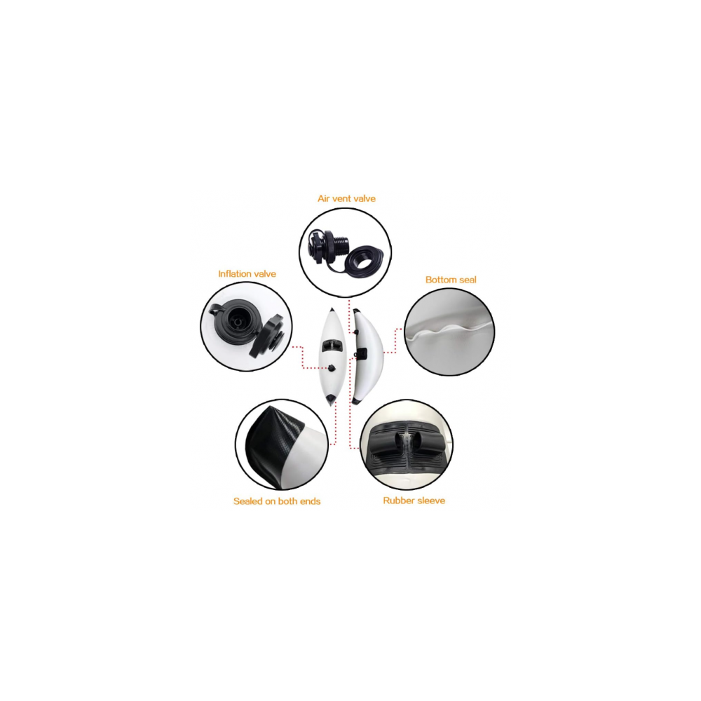 Piepūšamo balstu materiāls ir izgatavots no bieza PVC, kas nodrošina izcilu hermētiskumu un novērš gaisa noplūdi; mūsu produkts ir lieliski piemērots kajakiem, kanoe laivām, laivām, airēšanai, makšķerēšanai, stāvēšanai un iesācējiem.