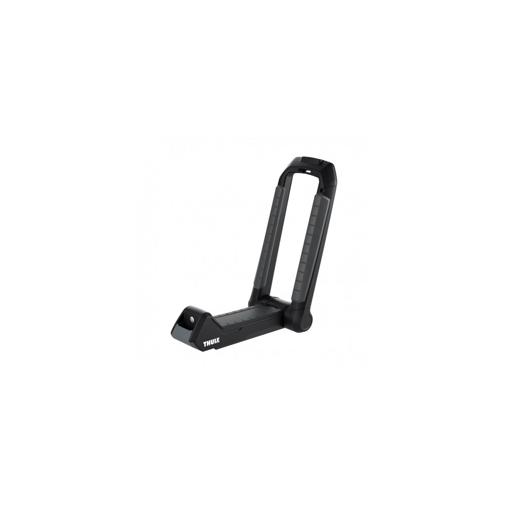 Daudzpusīgs, aizslēdzams kajaku statīvs, kas paredzēts viena vai divu kajaku pārvadāšanai un salokās plakani, kad netiek lietots.