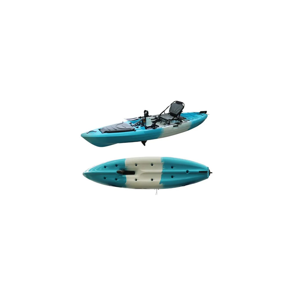 Jauns makšķerēšanas kajaka modelis ar propelleru pedāļa piedziņas sistēmu.