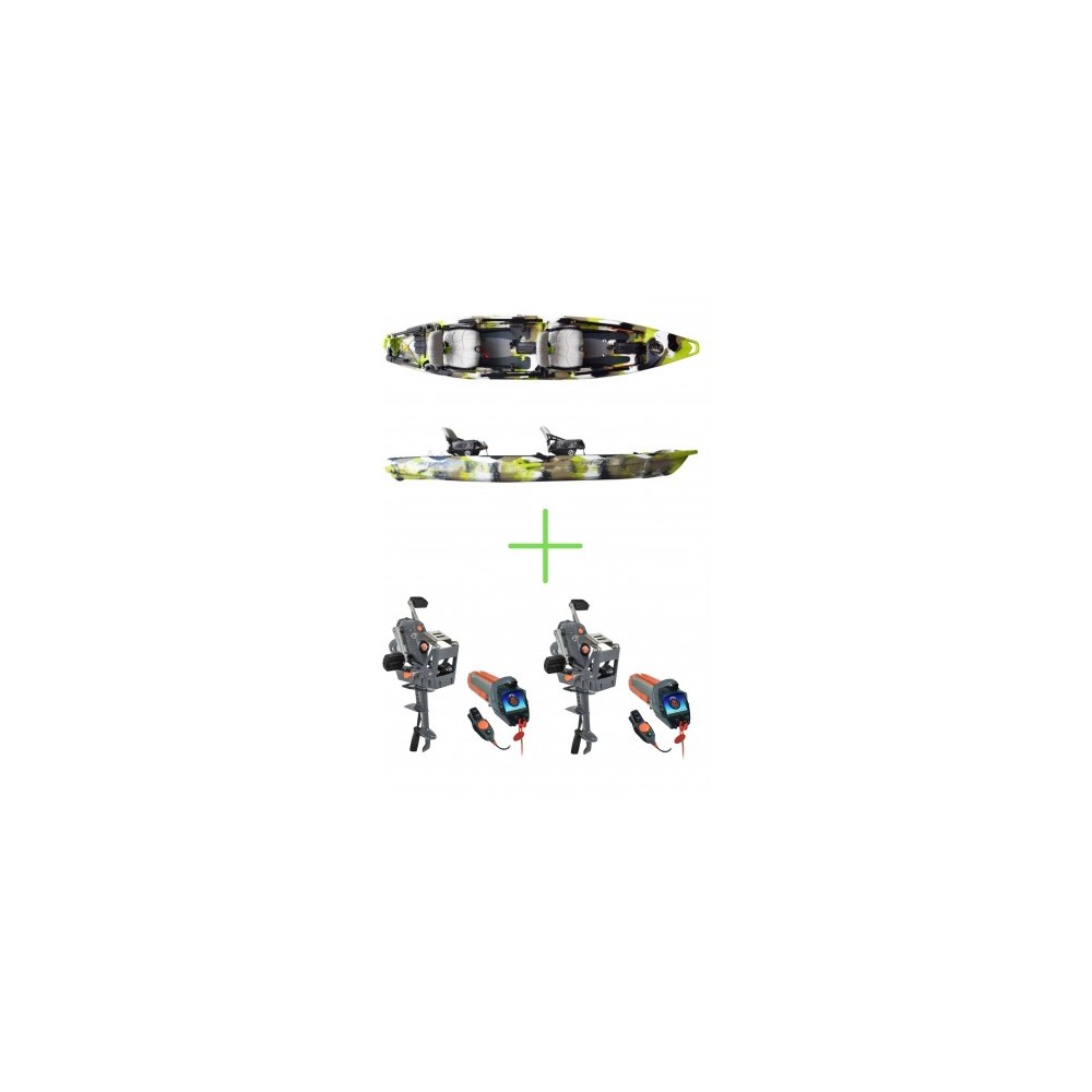 The Overdrive Lure II Tandem features the latest in the evolution of pedal-powered kayaking, and offers effortless speed on the water, as well as being adaptable and easy to use. When paired with the Motordrive*, this is the only two-in-one system that can boast forward and reverse pedal or power-driven capability in a single unit.