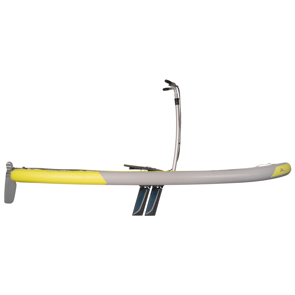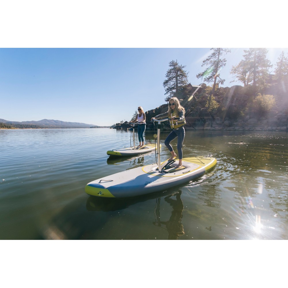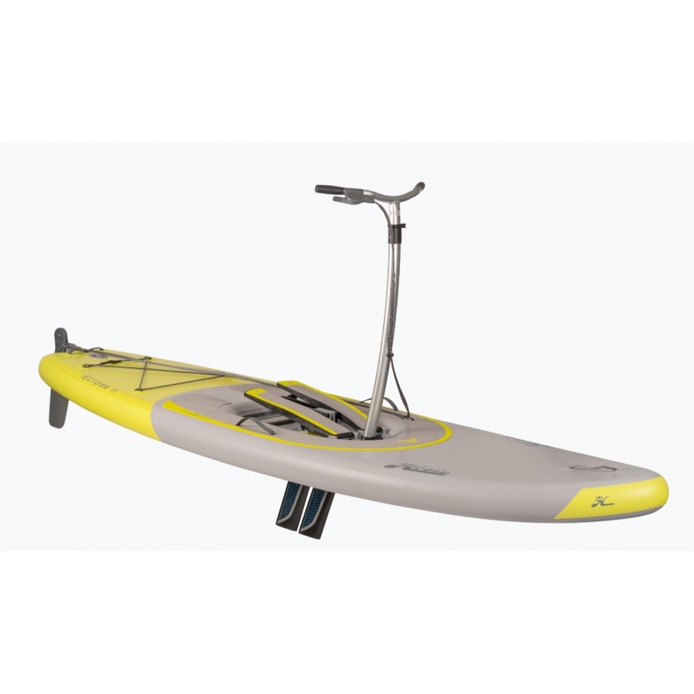 Iepazīstieties ar Mirage iEclipse — pirmo piepūšamo, ar pedāļiem darbināmo stāvdēli. Tas piedāvā ievērojamu stingrību un tādu pašu veiklu veiktspēju kā Eclipse, taču tas ir īpaši vieglā un pārnēsājamā iepakojumā. iEclipse ir īpaši plata stāvēšanas platforma ar EVA stāvēšanas paliktņiem, kas nodrošina stabilu stabilitāti vējā, viļņos un nomodā. Tā jaunā un uzlabotā korpusa konstrukcija samazina svaru, vienlaikus palielinot izturību. Augsto tehnoloģiju diagonālā dropstitch konstrukcija ļauj iEclipse uzpūst līdz 10 PSI, nodrošinot tādu pašu izturīgu stingrību un veiklu veiktspēju kā oriģinālajam Eclipse, taču neticami vieglā iepakojumā, ko varat paņemt līdzi jebkur. Ar MirageDrive GT pedāļa piedziņu katrs iEclipse solis ļauj jums viegli virzīties uz priekšu. Tā intuitīvā stūres sistēma ar vienu roku tiek piestiprināta tieši pie stūres un dēļa, izmantojot ērti lietojamu stūres sistēmu, kas var ieslēgties, vienkārši nospiežot vai pavelkot sviru. Un tāpat kā visas Mirage piepūšamās automašīnas, arī iEclipse ir viegli uzstādīt un vēl vieglāk transportēt. Iemetiet to automašīnas aizmugurē, ievietojiet to RV vai pārbaudiet to lidojuma laikā – ar iEclipse piedzīvojumi ir visur. Divdaļīgā noņemamā stūre, augstspiediena rokas sūknis un liela tilpuma elektriskais sūknis ir iekļauti viegli iekraujamajā, ritošā ceļojumu somā, kas ir pārnēsājama, saliekama un gatava nākamajam piedzīvojumam.