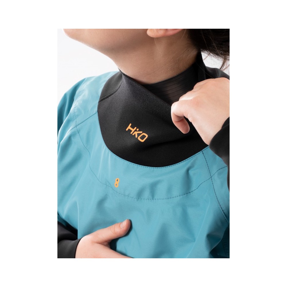 + Lateksa plaukstas un kakla blīves maksimālai sausuma nodrošināšanai ir vēl vairāk aizsargātas ar mīkstām neoprēna aprocēm