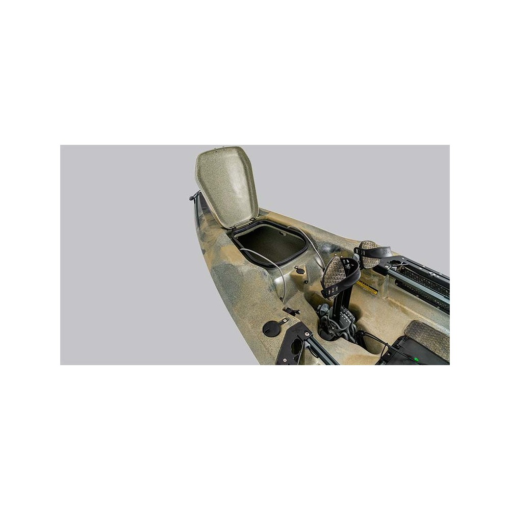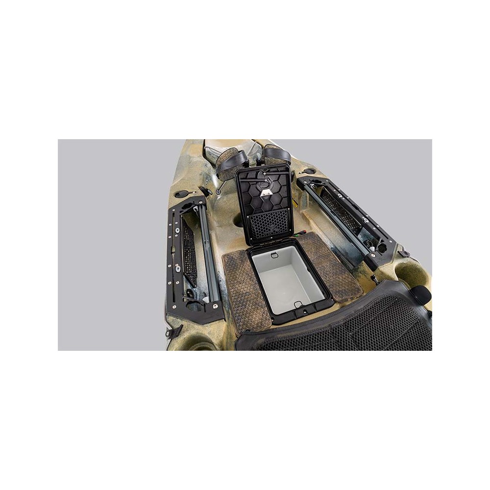 Šī pilnībā aprīkotā makšķerēšanas mašīna ir paredzēta ikvienai iespējamai makšķerēšanas ekspedīcijai neatkarīgi no tā, vai jūs ložņājat okeānā, meklējot medījamo zivtiņu, vai vajājat basus savā iecienītākajā saldūdens makšķerēšanas bedrē. Hobijs ir uzlabojis kajaku makšķerēšanas sportu, ieviešot Kick-Up spuras, kas automātiski ievelkas pēc trieciena. Īpaši platais stāvošais klājs piedāvā uzlabotu mešanas platformu un ērtu skatu makšķerēšanai, nodrošinot izcilu redzamību no augšas, kamēr revolucionārais Guardian Transducer Shield sniedz jums daudzdimensionālu redzējumu zemāk. Jaunais Vantage CTW sēdeklis nodrošina papildu platumu nepārspējamai telpai un komfortam. Hobie H-Rail ar integrētu patentētu RAM® Hand-Track™ un daudziem lielas ietilpības uzglabāšanas nodalījumiem nodrošina maksimālu pielāgošanu un organizēšanu piederumu montāžā, nodrošinot, ka viss jūsu aprīkojums ir rokas stiepiena attālumā. Šis precīzi noregulētais makšķerēšanas kuģis, ko darbina MirageDrive 180 ar Kick-Up Turbo spurām un ARC kloķiem, ir ļoti daudzpusīgs, ātrs, kluss un ārkārtīgi veikls. Tagad ar mūsu Kick-Up Rudder sistēmu ar dubultām stūrēšanas iespējām, cīņa ar dreifēšanu un navigācija šaurajā ūdenī nekad nav bijusi tik vienkārša.