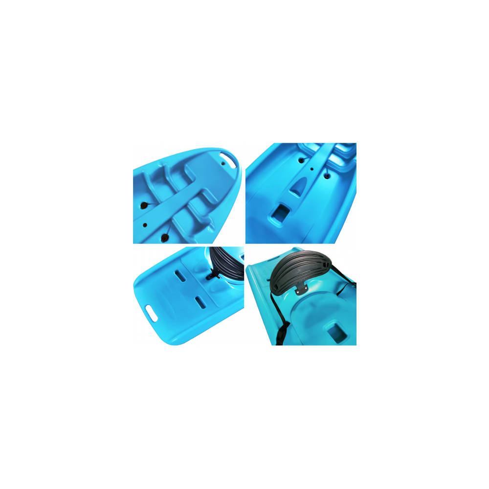AMBER NEMO KID kajaks ir sēdeklis uz virsmas, kas paredzēts visprasīgākajiem atpūtas airētājiem, lai baudītu stabilu un relaksētu airēšanās pieredzi mierīgos vai lēni tekošos ūdeņos. Korpusa dizains nodrošina izcilu stabilitāti un lielisku sekošanu līdzi, vairākas kāju balsta pozīcijas dažāda izmēra airētājiem. Izgatavots no pūšanas formēta augsta blīvuma polietilēna (HDPE), kas padara to izturīgu un triecienizturīgu. Fiksētā sprādze abās klāja pusēs ļauj nostiprināt airi uz kajaka un ļauj atbrīvot abas rokas, kad tas nepieciešams. Formētie pārnēsāšanas rokturi un centrālais pārnēsāšanas rokturis atvieglo tā transportēšanu uz krastmalu un no tās. Ērta atzveltne ilgākiem airēšanas piedzīvojumiem. Viegls un diezgan īss - padara šo kajaku par ideālu vietu ērtai uzglabāšanai un transportēšanai.