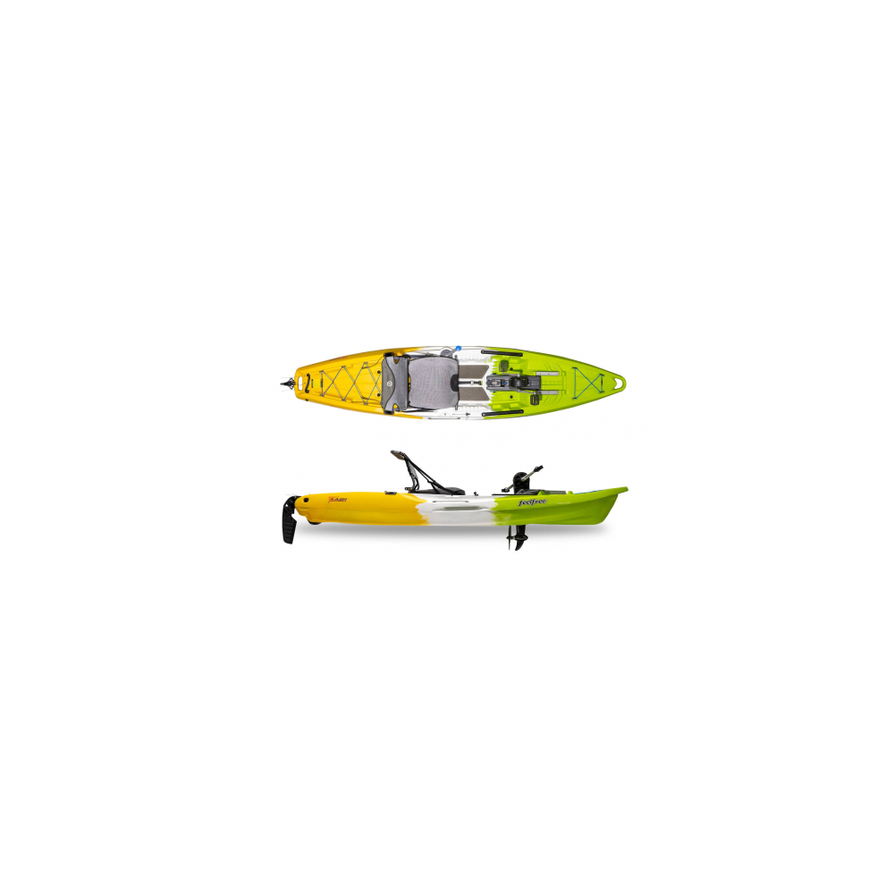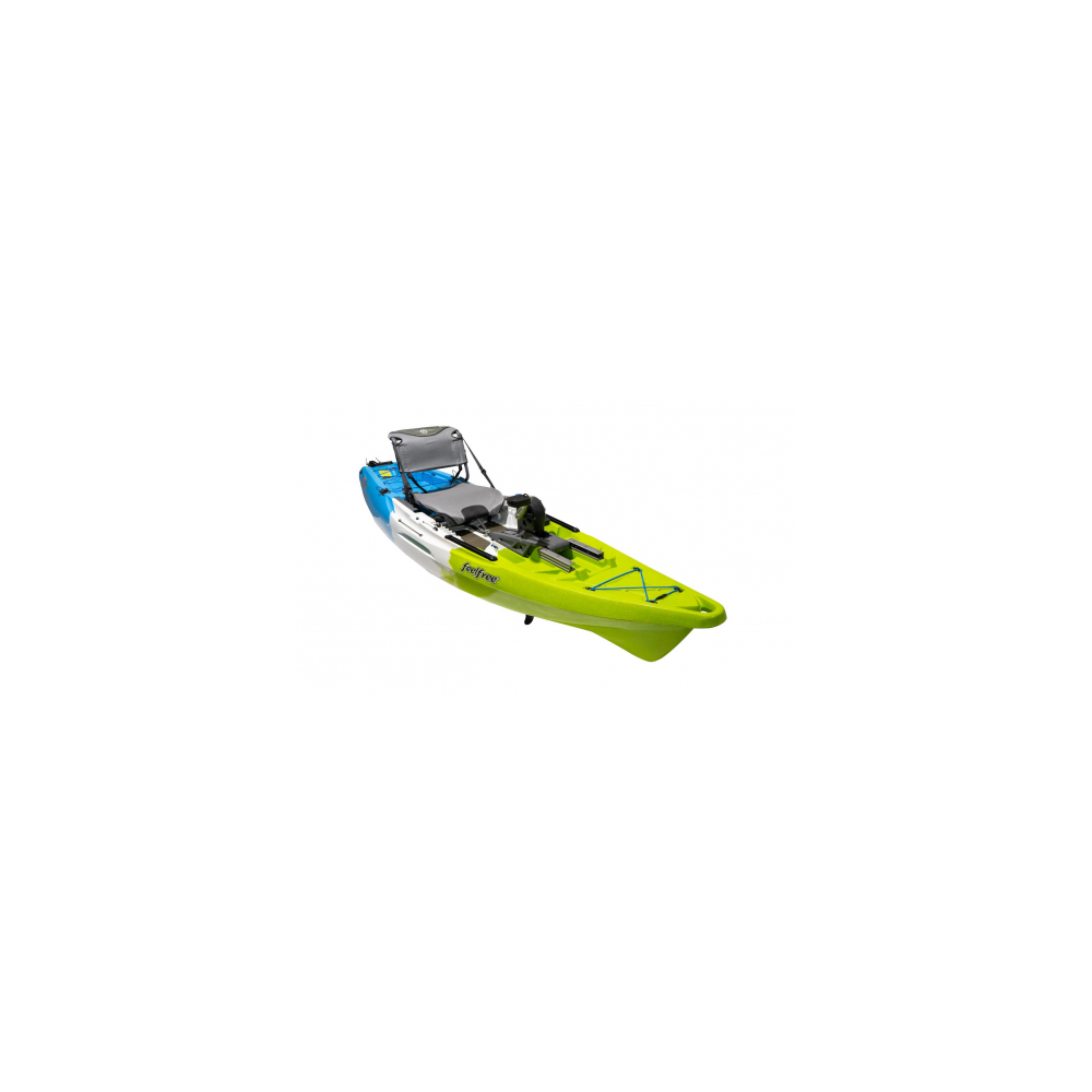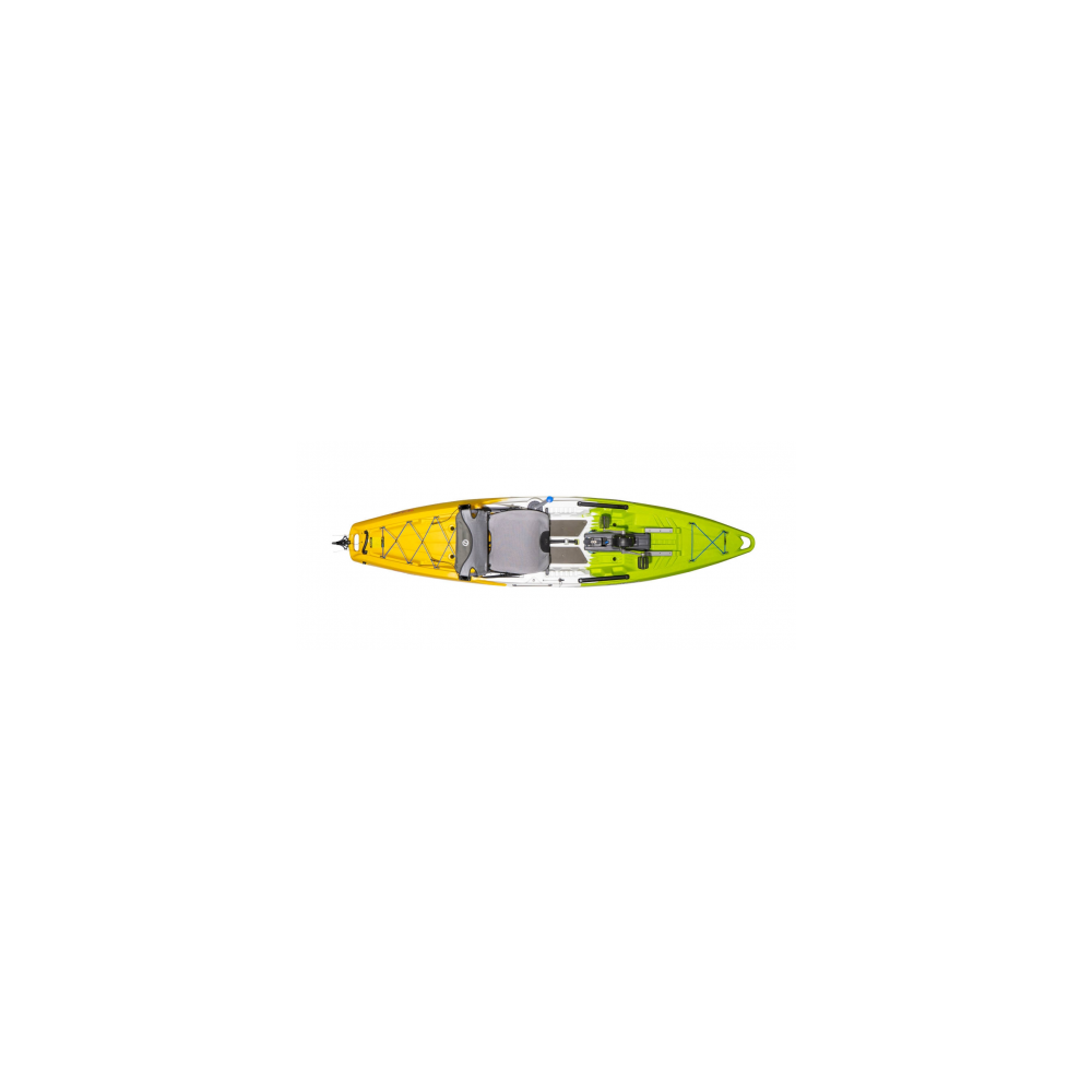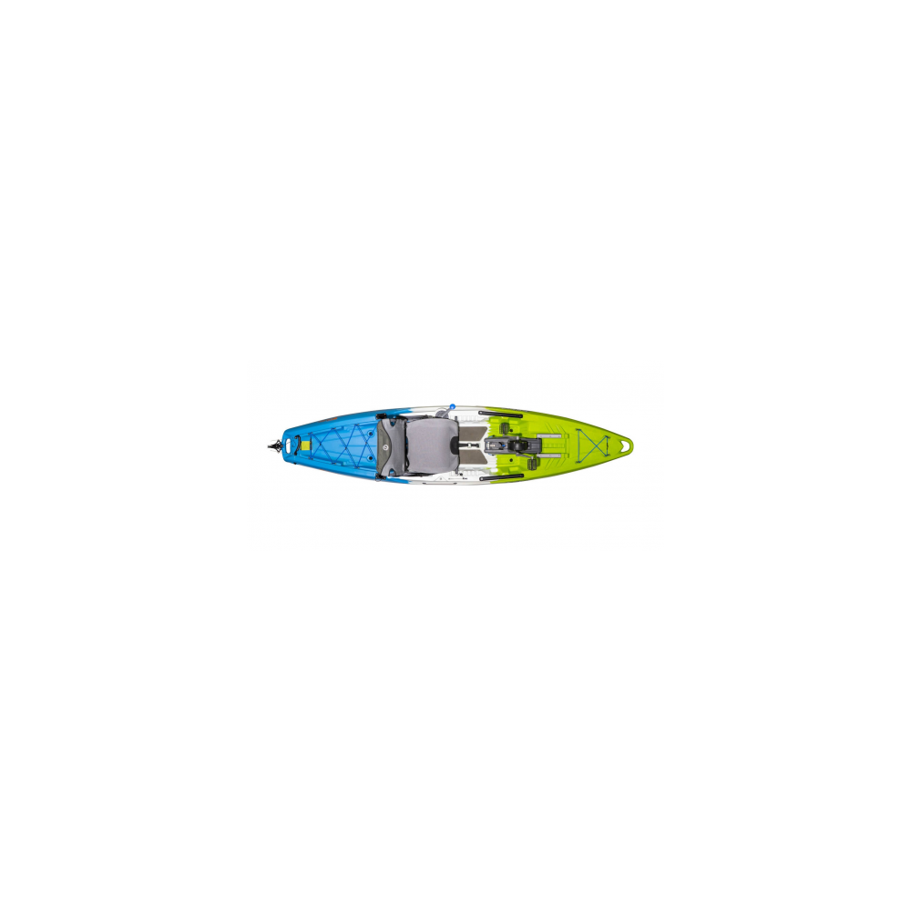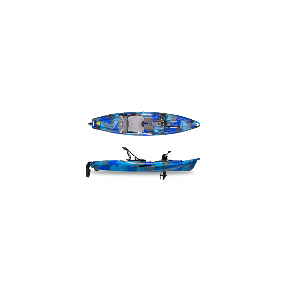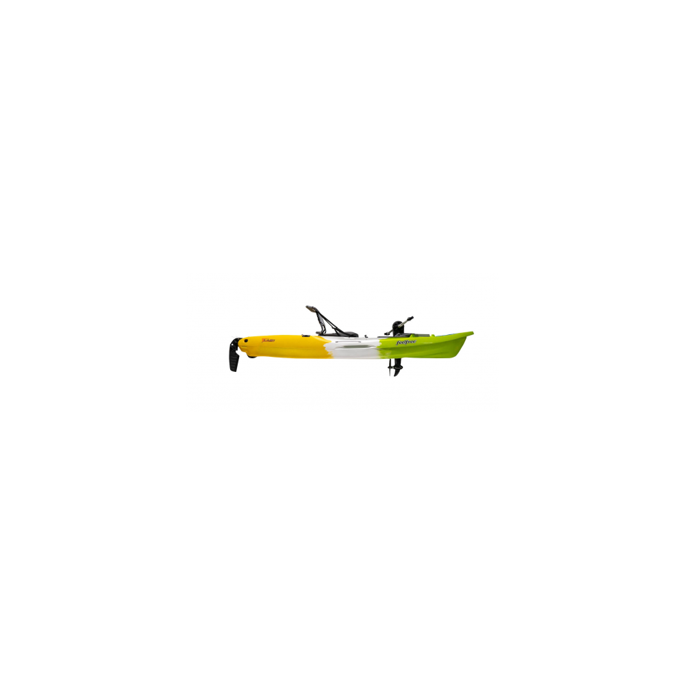 Other features include the UNI-Track accessory attachment rail system, molded in handles, bow and stern storage area w/bungee tie downs, two rear flush mounted rod holders and the popular and ever so convenient patented Wheel in the Keel. Feature rich yet simply designed, the all-in-one pedal kayak for fun, fishing and fitness!
